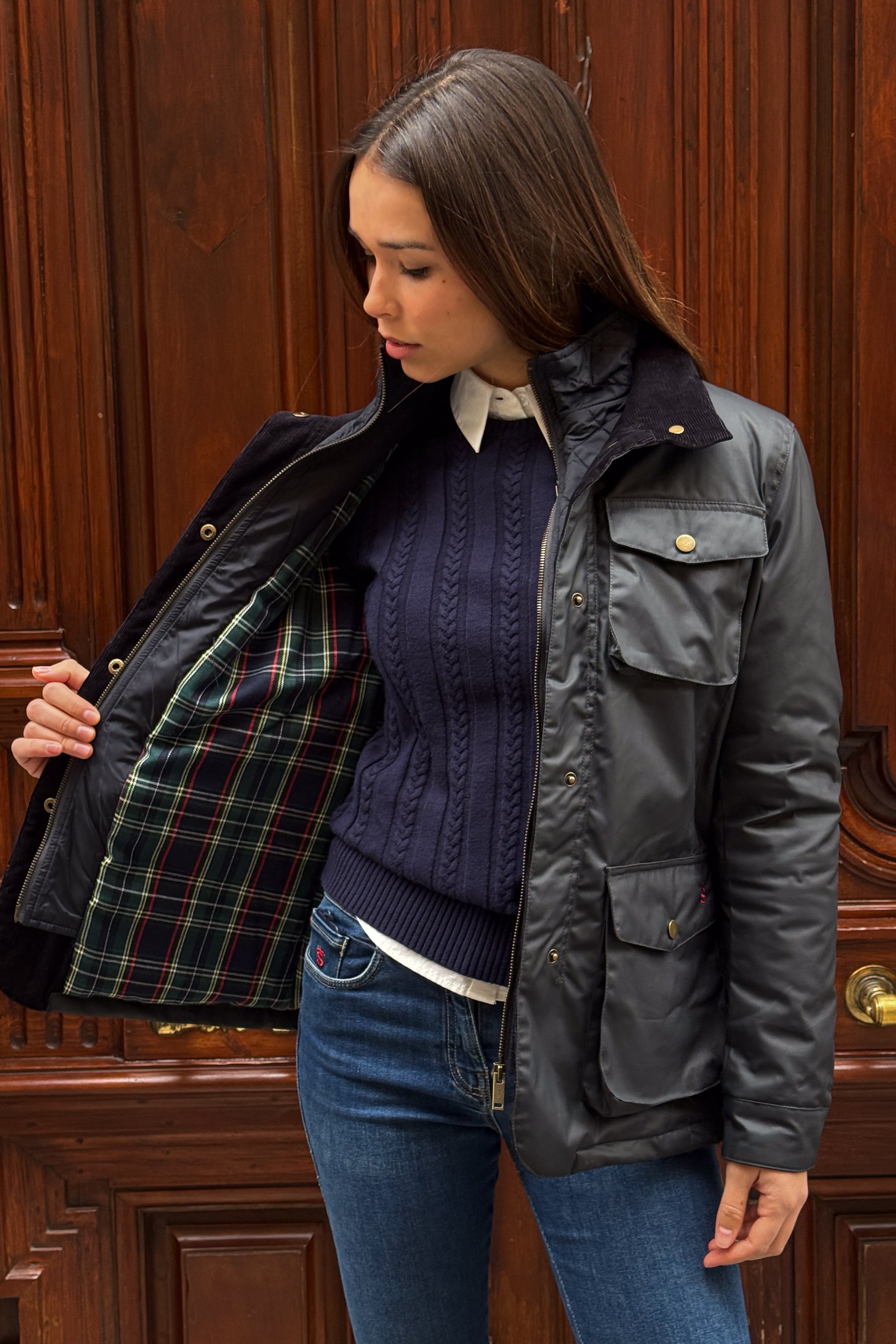 La Parka Encerada Marrón destaca por su acabado tipo encerado, que proporciona una protección efectiva contra la humedad y el viento. Su cuello de pana marrón aporta un contraste elegante y una sensación agradable al contacto con la piel, asegurando comodidad durante su uso. En su interior, el efecto chaleco tipo huskye añade una capa adicional, facilitando la retención del calor sin aumentar peso ni volumen. Además, el forro interior de tartán brinda un toque clásico y sofisticado. Esta parka es una opción versátil para quienes buscan combinar funcionalidad, protección y estilo en una sola prenda imprescindible para el otoño e invierno.