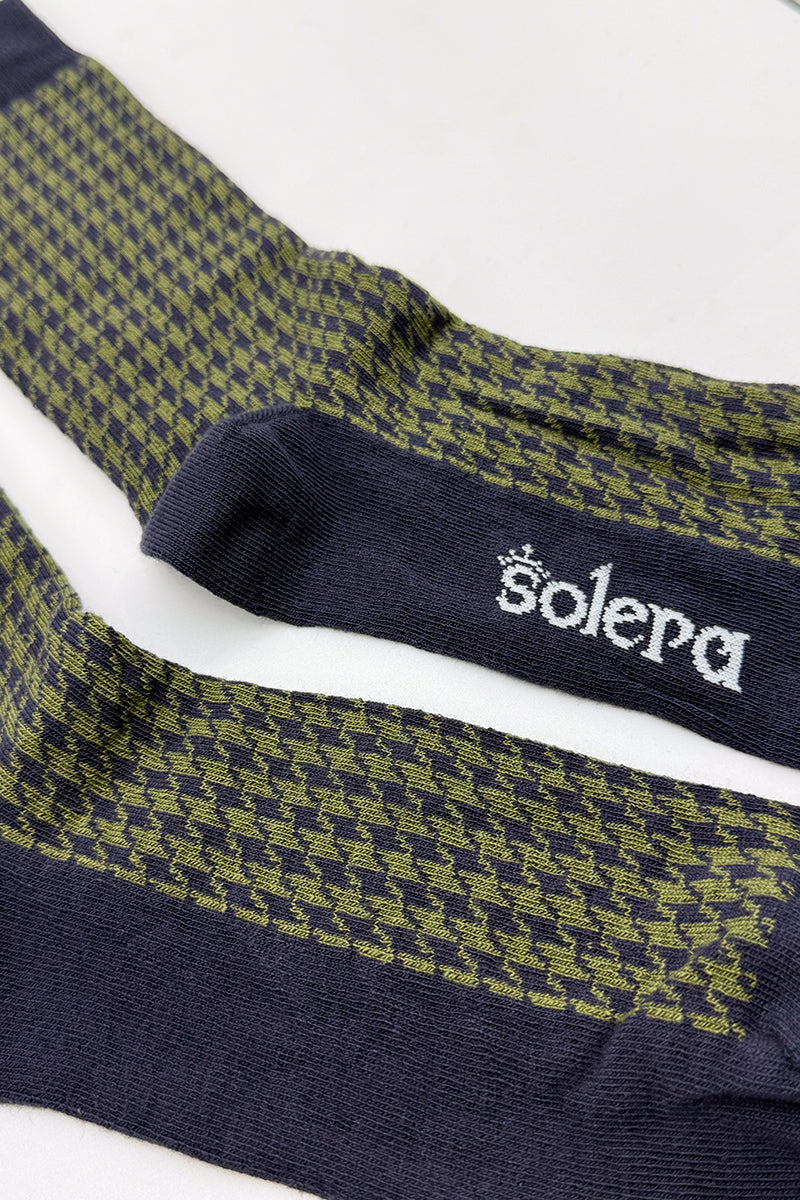 Calcetín con motivo pata de gallo en tonos marino y verde kaki