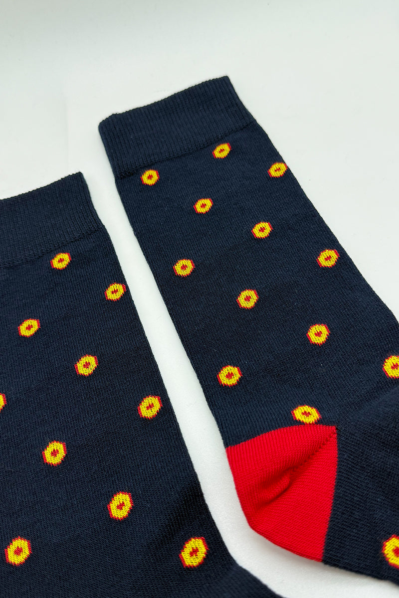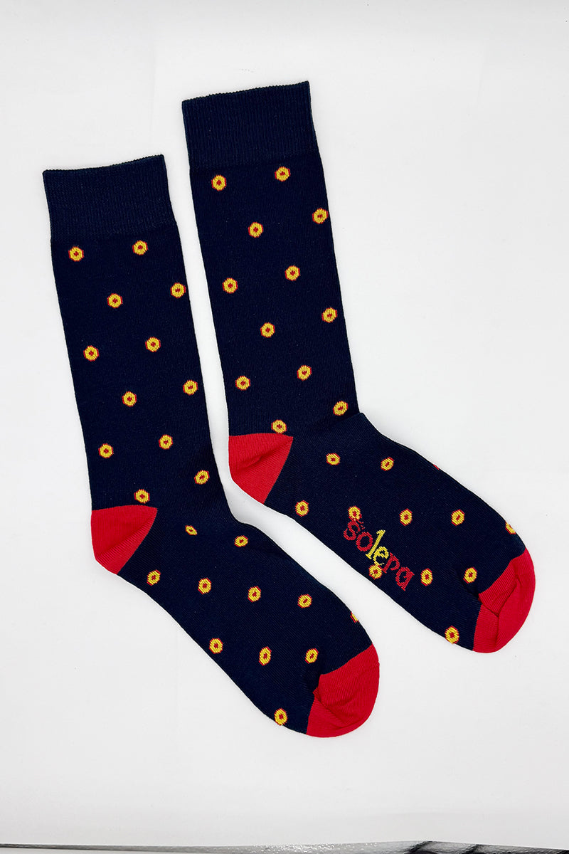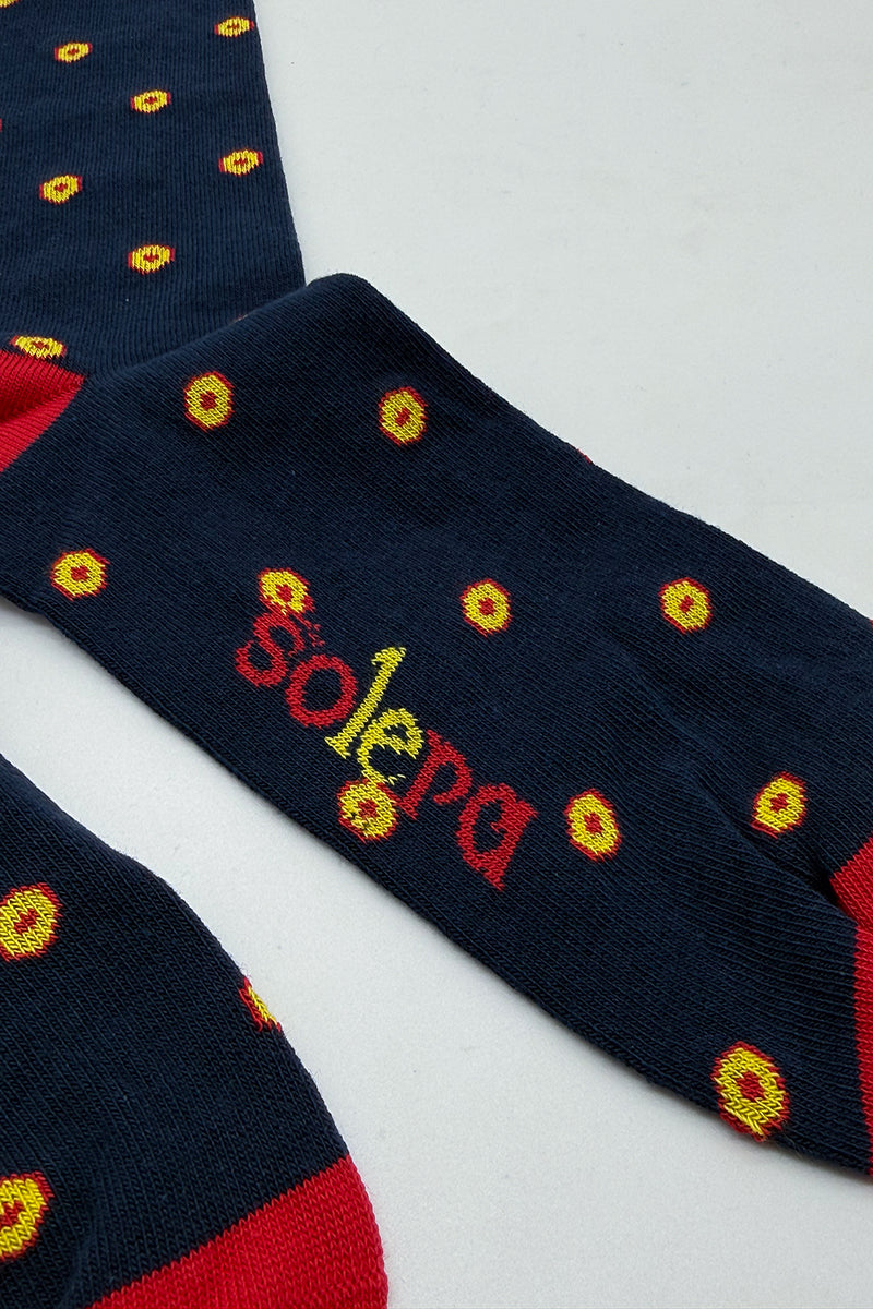 Estos calcetines marinos combinan un diseño clásico con un toque distintivo gracias a sus patrones de banderas y topos. Fabricados con materiales de alta calidad, ofrecen una comodidad duradera y un ajuste perfecto. Son ideales para quienes buscan añadir personalidad a su look sin sacrificar comodidad ni funcionalidad. Perfectos para uso diario o para complementar un estilo casual con sofisticación.