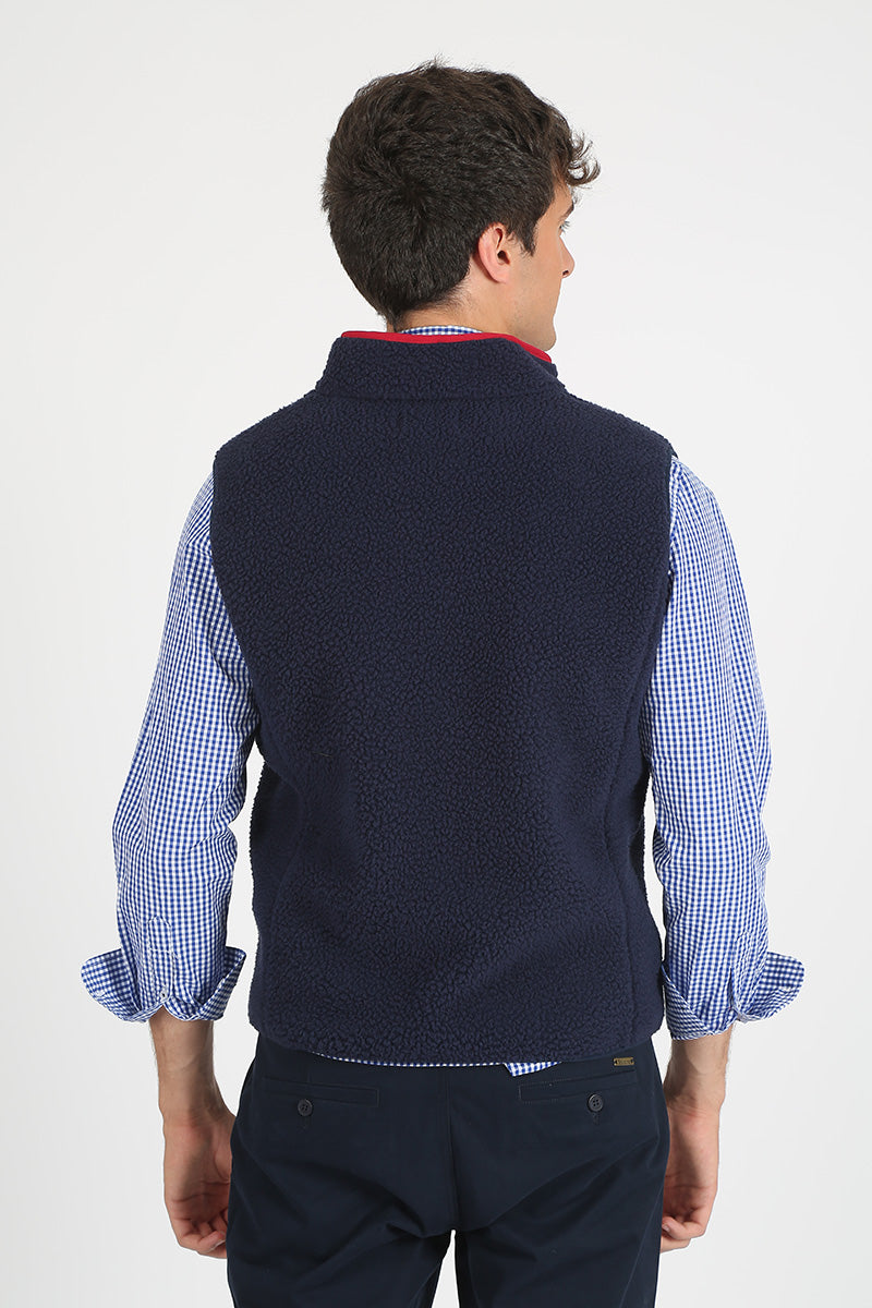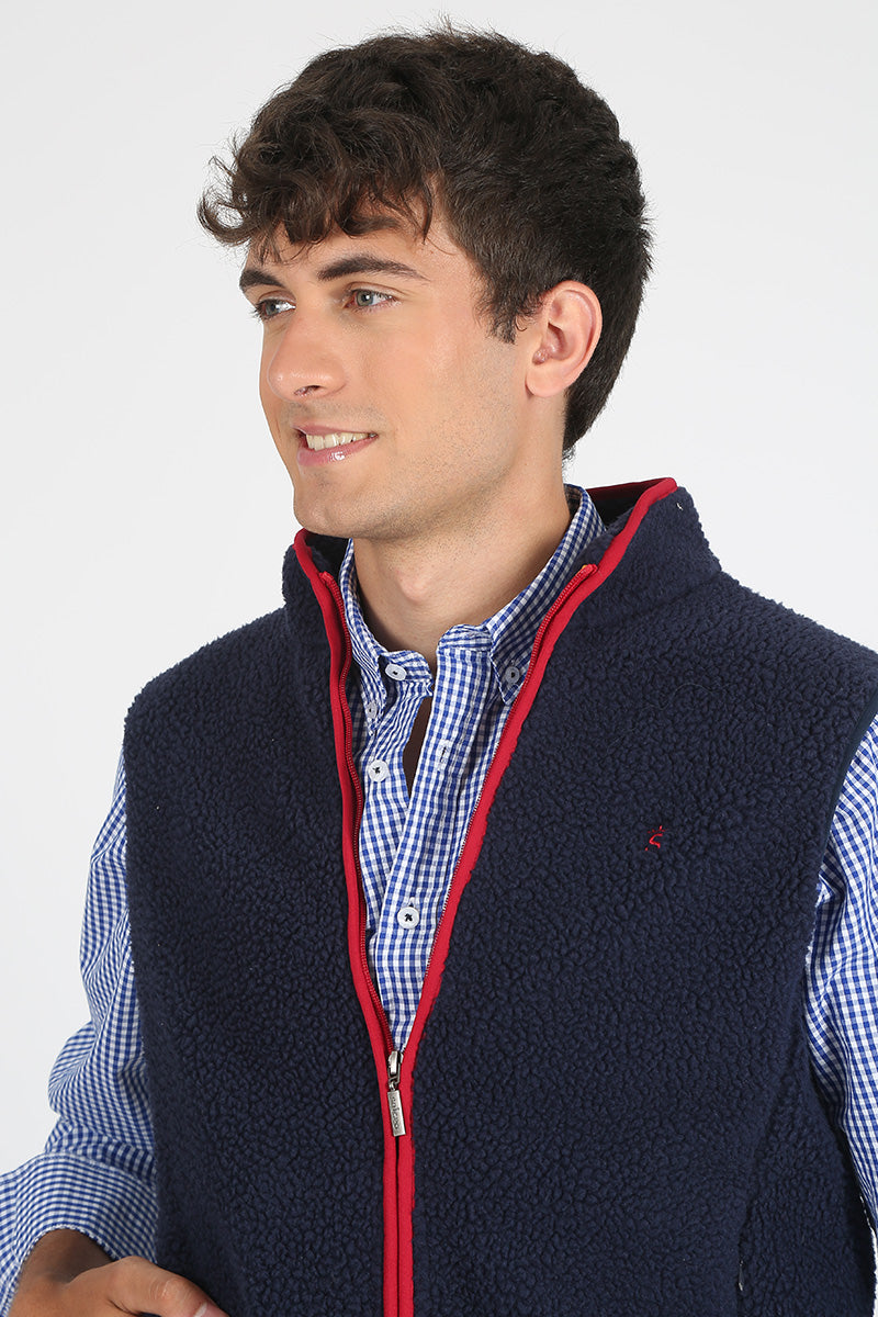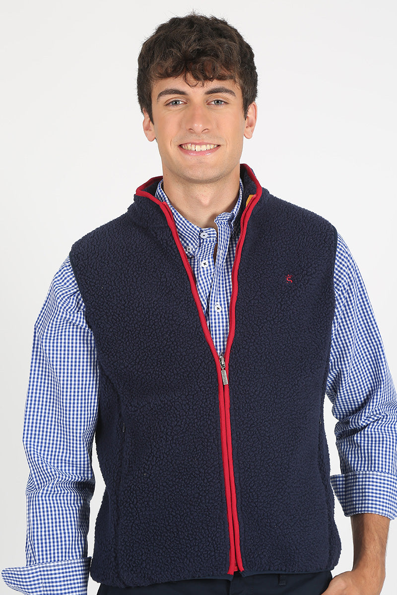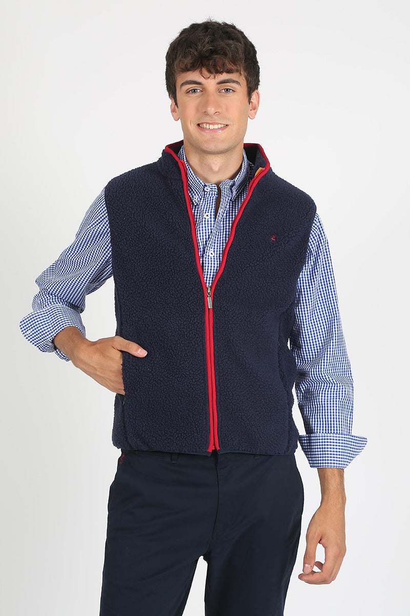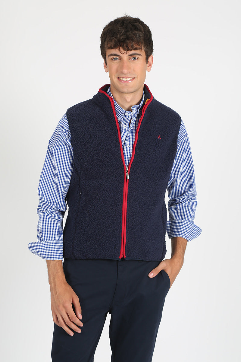 Este chaleco polar granate combina comodidad y estilo con un diseño de borreguito suave y cálido.