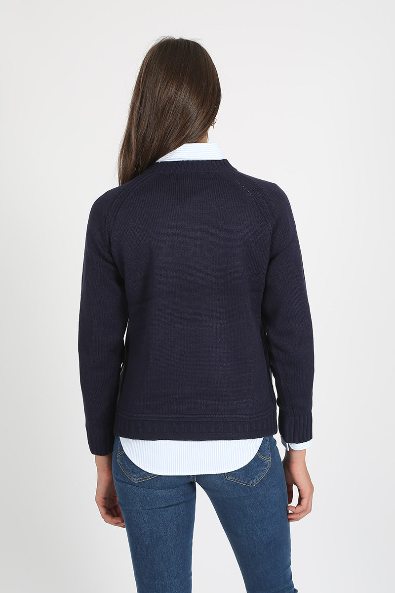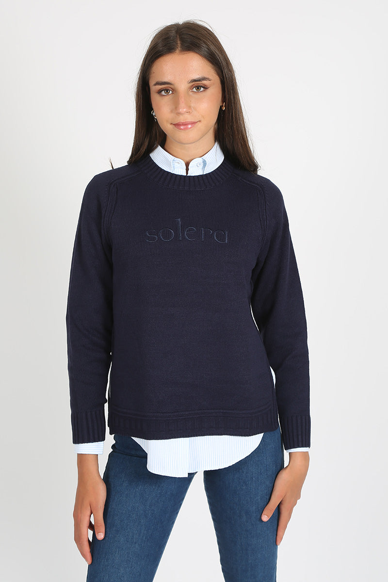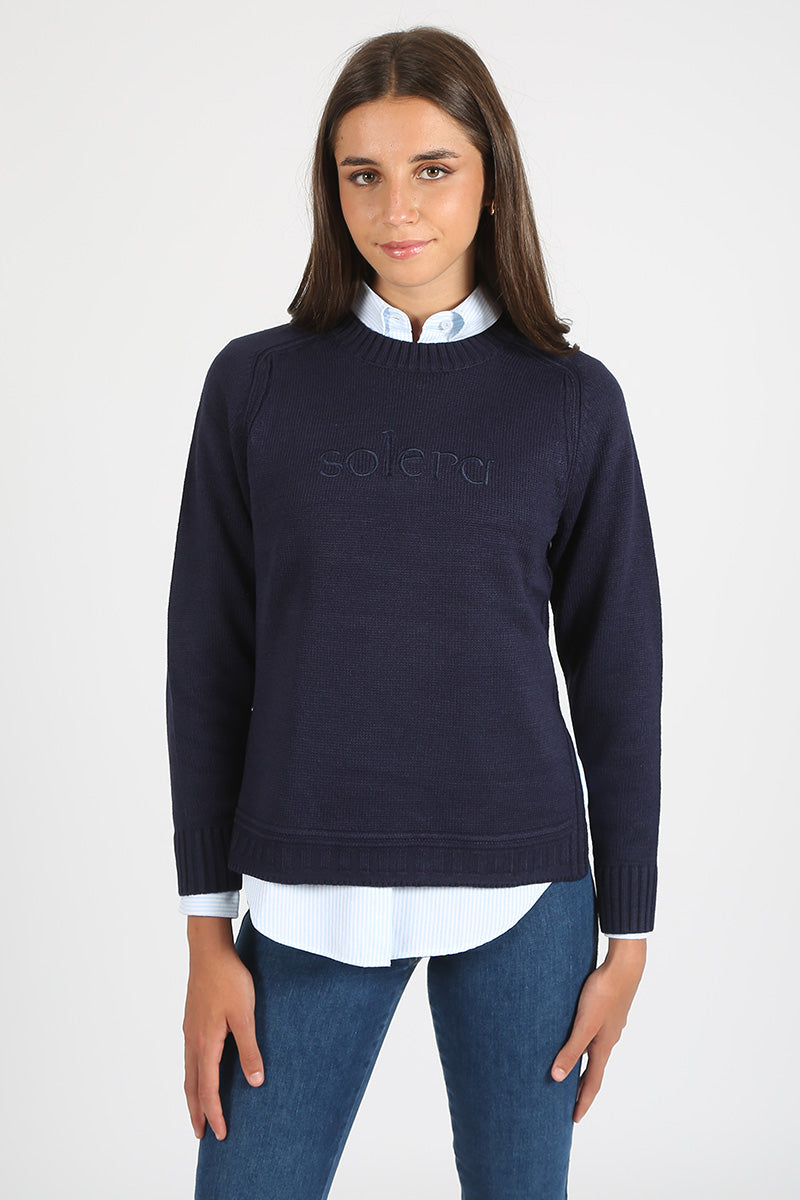 Este jersey marino de cuello redondo combina un diseño amplio y cómodo con un bordado de la marca al tono, que aporta un toque sofisticado y discreto. Disponible en tres colores, ofrece opciones versátiles para distintos estilos. Su confección asegura una textura gustosa, perfecta para quienes buscan confort y elegancia en una sola prenda.
