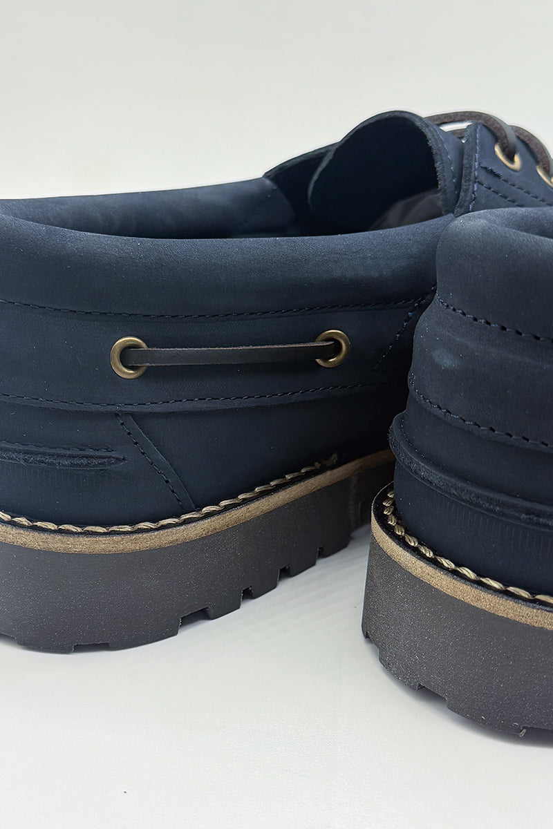 Náutico de ante nobuk en tonalidad marino que combina elegancia y funcionalidad. Confeccionado con cuero genuino y refuerzos en corno, este modelo destaca por su suela gruesa de gran durabilidad, ideal para un uso versátil tanto en entornos costeros como urbanos. El acabado nobuk proporciona una textura sofisticada y un tacto premium, mientras que la construcción robusta garantiza comodidad y resistencia al paso del tiempo. Una opción imprescindible para quien busca calidad artesanal y estilo marinero sin compromisos.