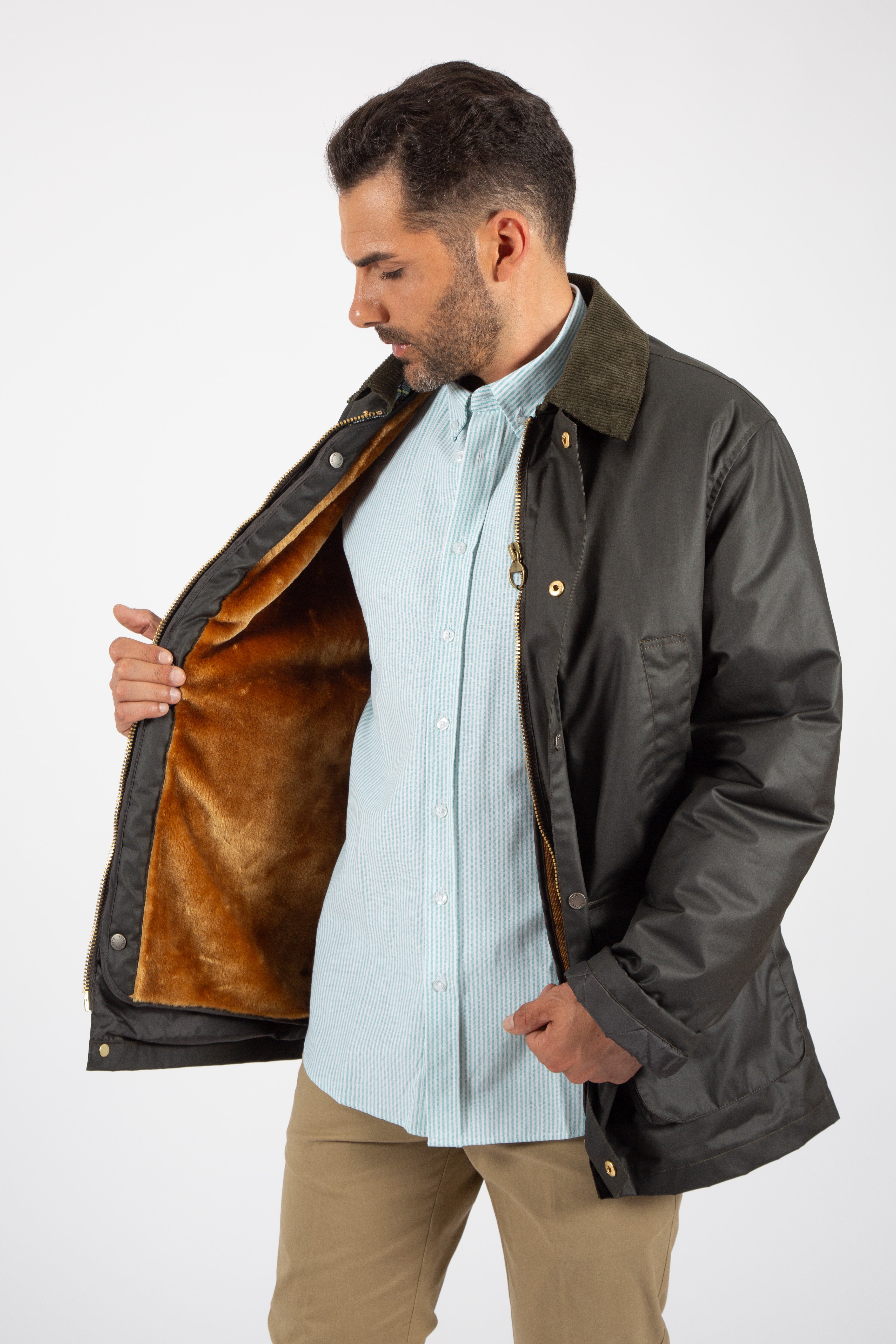 La parka tipo encerada kaki combina tradición y funcionalidad con un diseño clásico que nunca pasa de moda. Su tejido encerado ofrece excelente resistencia al agua y protección, mientras que el forro desmontable de mutón garantiza calidez adaptable según la temporada. Perfecta para quienes buscan una prenda duradera y versátil, esta parka ofrece confort y estilo atemporal en una sola pieza.