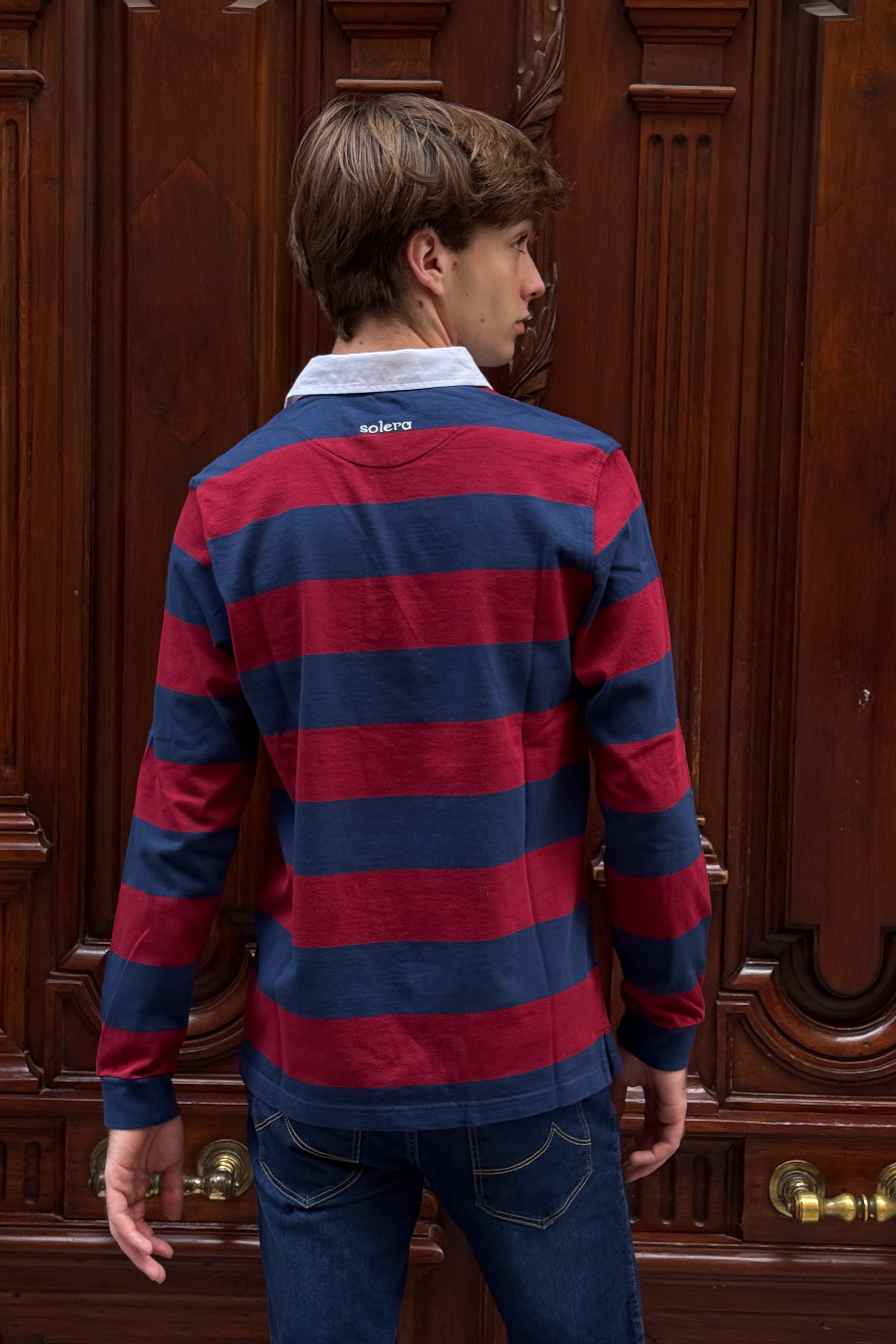 Polo de rayas bicolor confeccionado en 100% algodón single jersey extragrueso, garantizando durabilidad y comodidad en cada uso. Destaca por su cuello reforzado en loneta, que mantiene la forma y proporciona un acabado impecable. Complementan el diseño los bordados artesanales en pecho y espalda, detalles que elevan la propuesta estética con un toque de distinción. Ideal para quien busca prendas de calidad superior con carácter marinero y presencia visual.