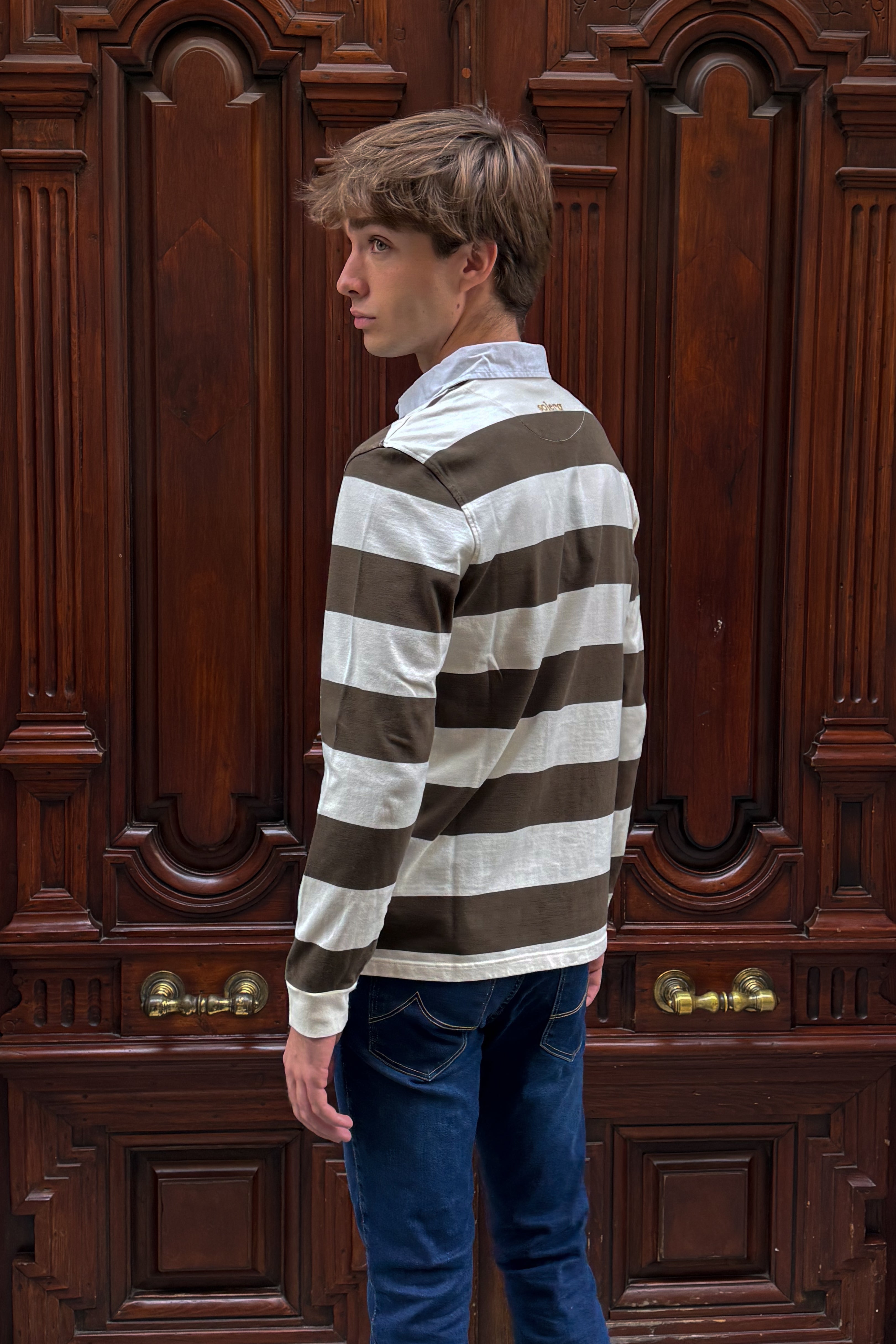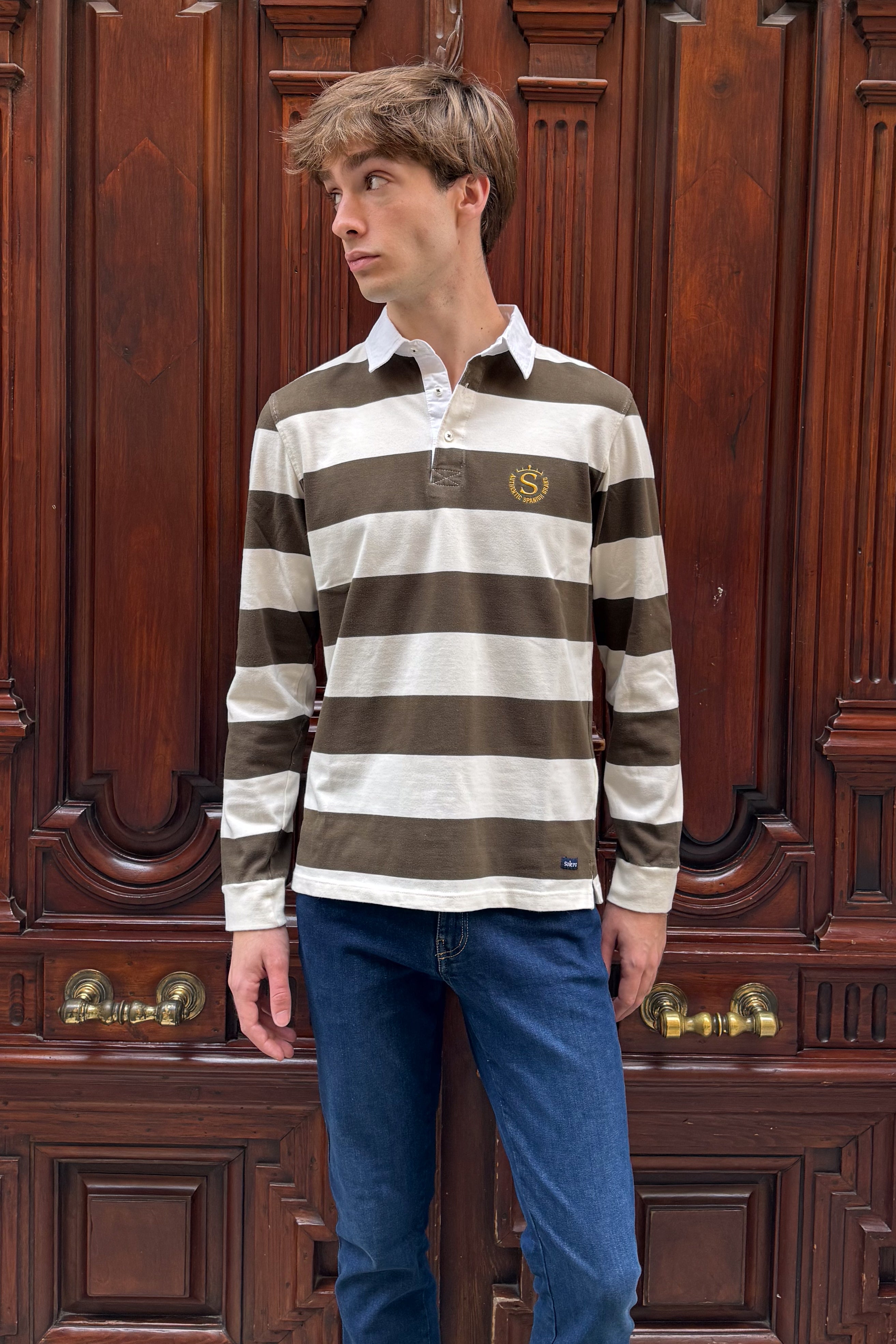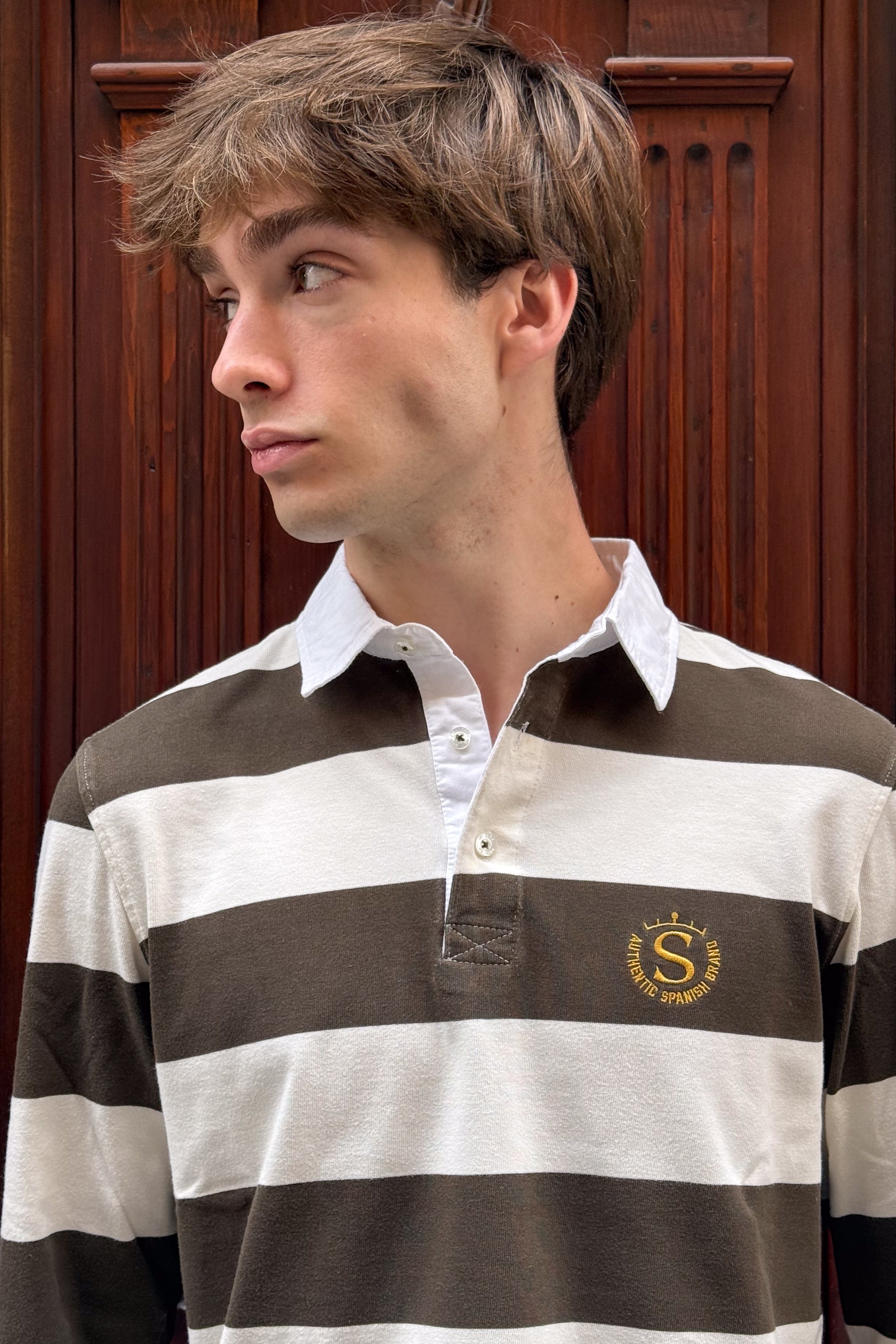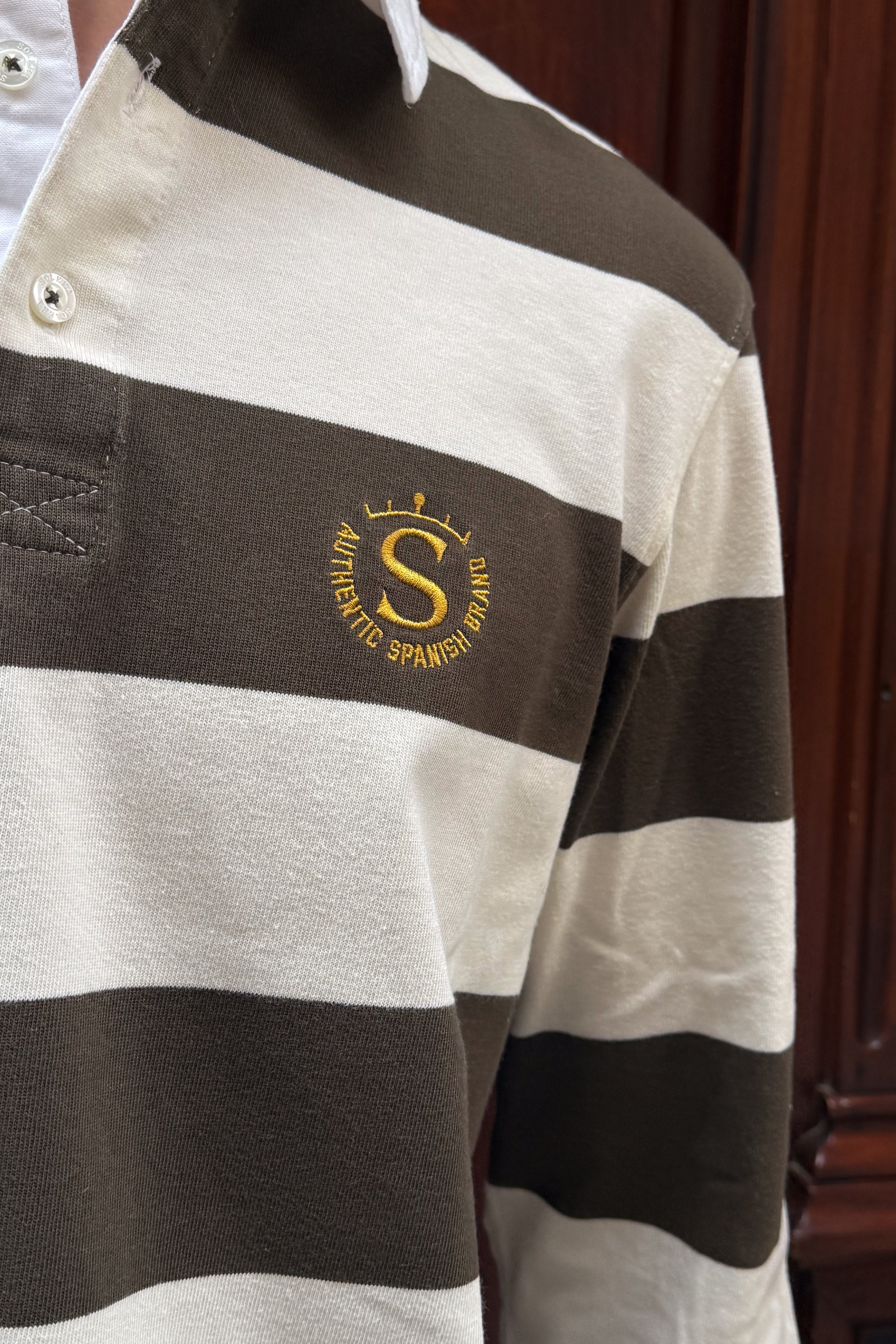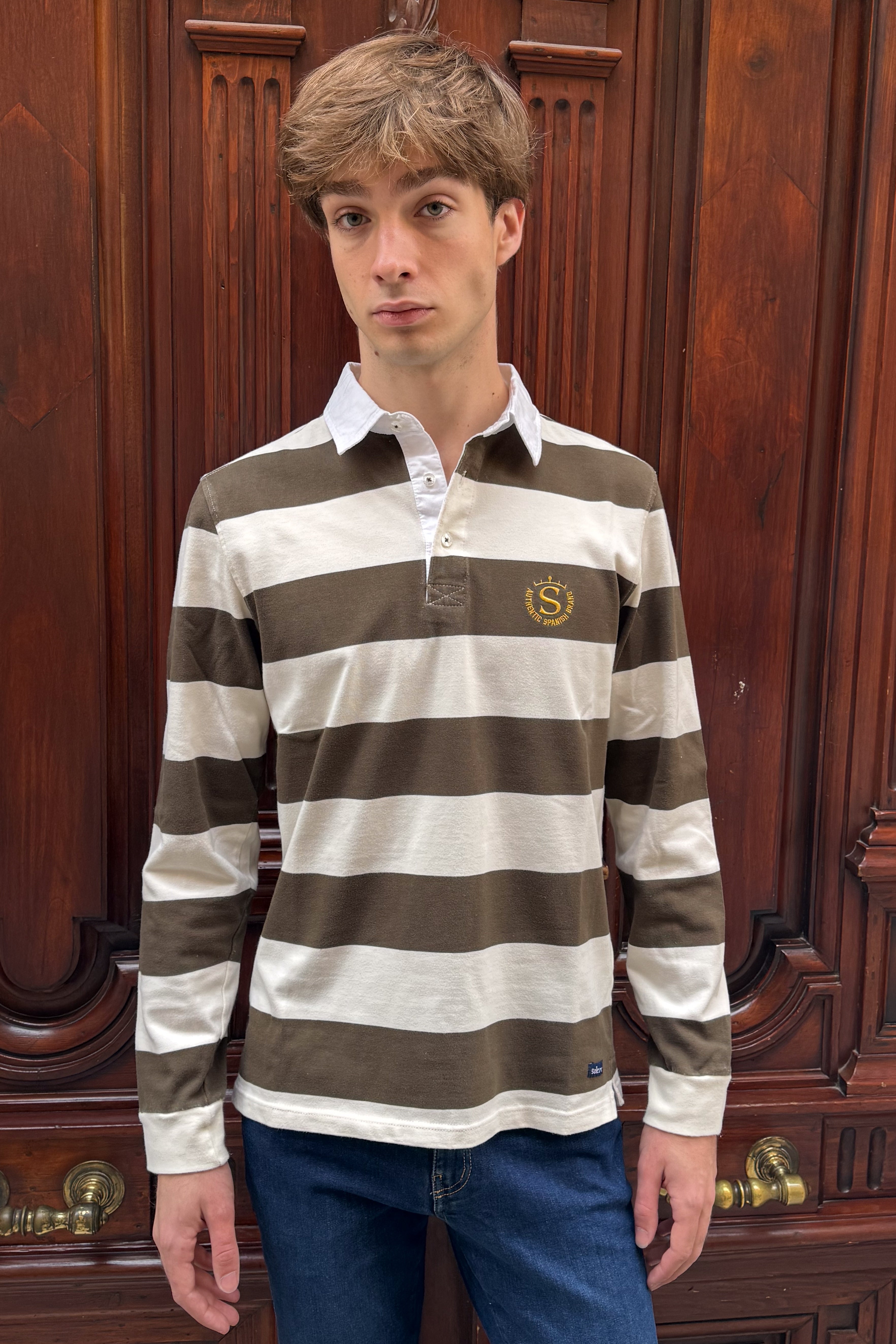Polo de rayas bicolor confeccionado en algodón 100% single jersey extragrueso, garantizando durabilidad y confort superior. Destaca por su cuello en loneta reforzada que mantiene la forma tras múltiples lavados. Presenta bordados artesanales en pecho y espalda, añadiendo un toque de distinción náutica. Ideal para quien busca prendas de calidad con acabados premium y presencia visual marcada.